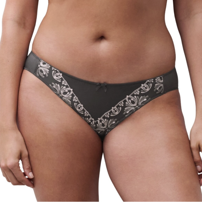 Bikini brief with embroidered details, lined front, and a cotton gusset.