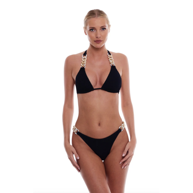 A modern chain-accented take on a classic: the Seychelles Chains Full Coverage Bikini Bottom features sleek waterproof chain details at the front for effortless glamour and a flattering full coverage fit. One-size-fits-most (ideal for sizes 2-14), with ultra-stretchy crinkle fabric that molds to your shape for all-day comfort.