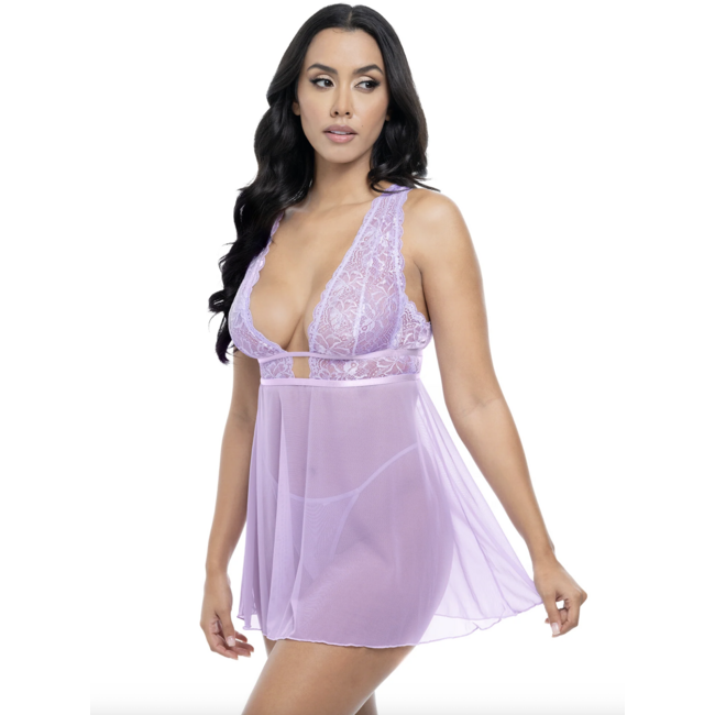 Elevate your lingerie collection with the exquisite Stassi Sheer Babydoll. This delicate lace and mesh babydoll offer wire-free support and a figure-flattering silhouette. The fully adjustable straps and strappy back add a touch of sensuality, making it perfect for both lounging and sleepwear. Comes with a matching G-string.